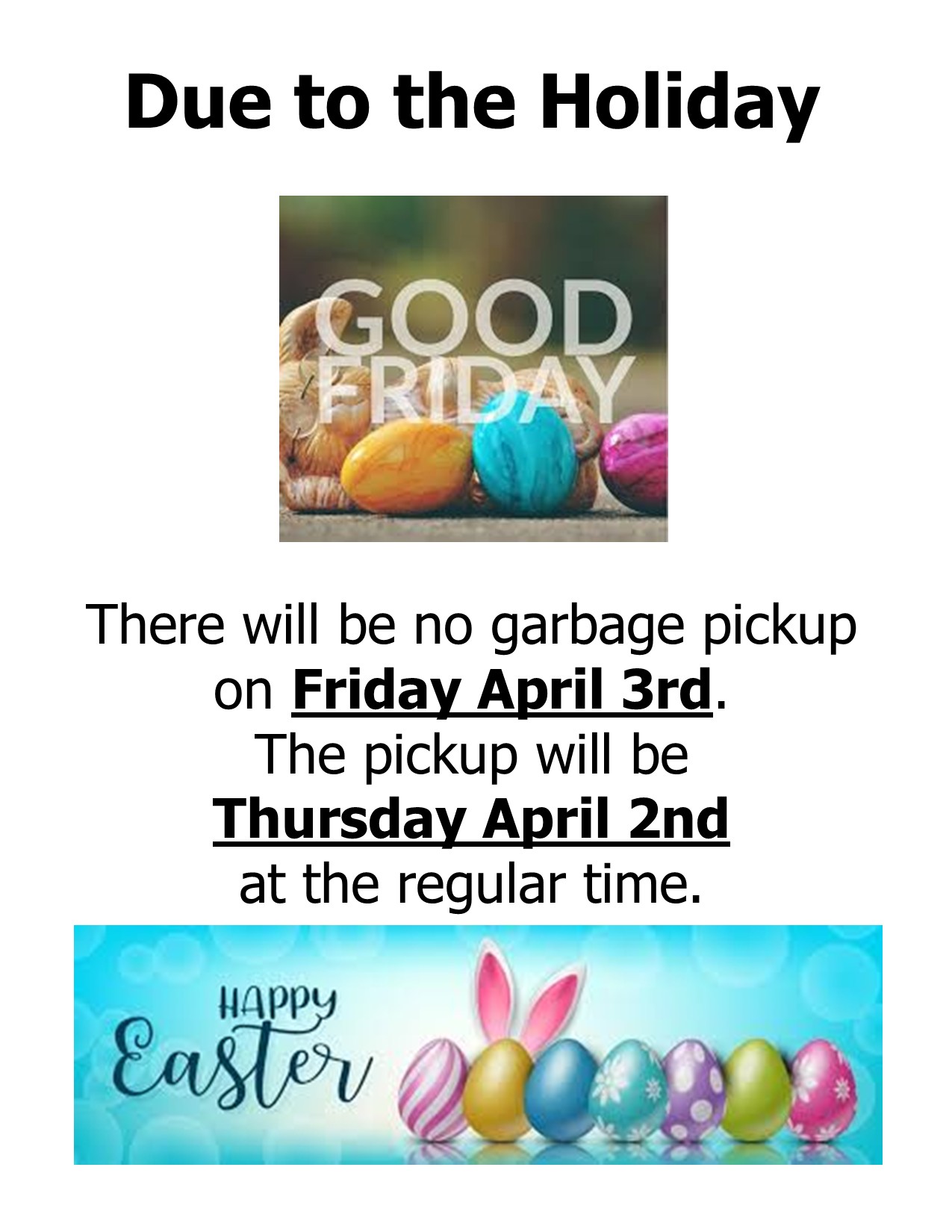 No Friday Garbage Pick-Up