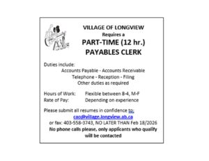 Phone: 403-558-3922 Email: info@village.longview.ab.ca
